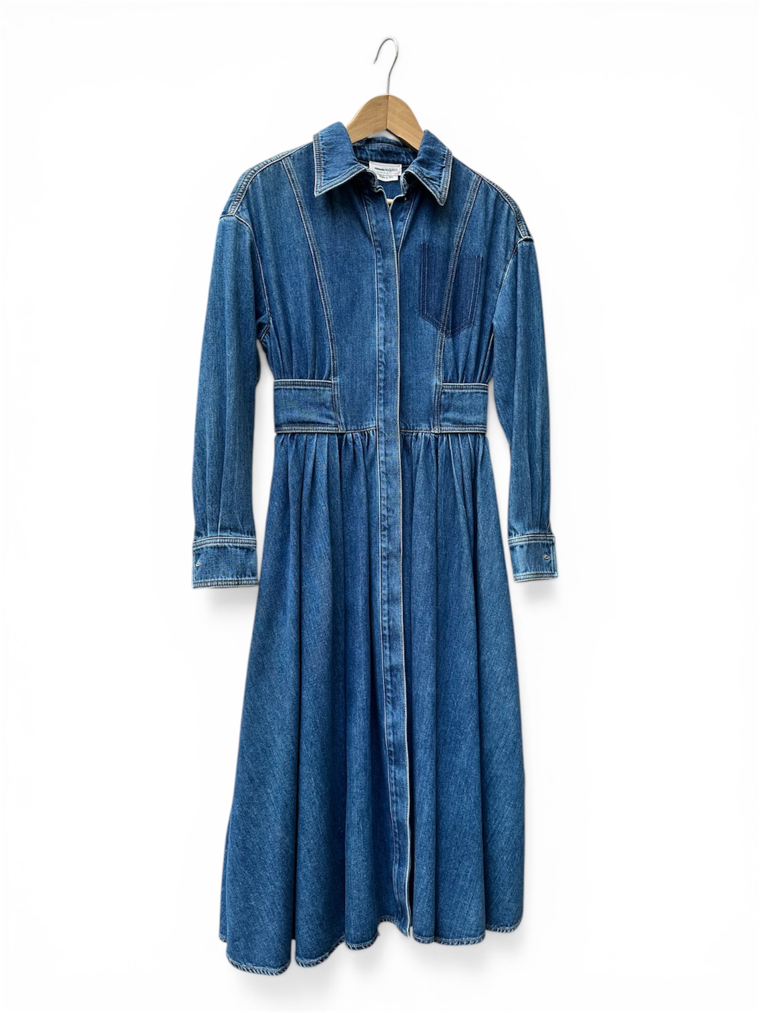 Lange jeansjurk van ontwerper Alexander mcQueen.