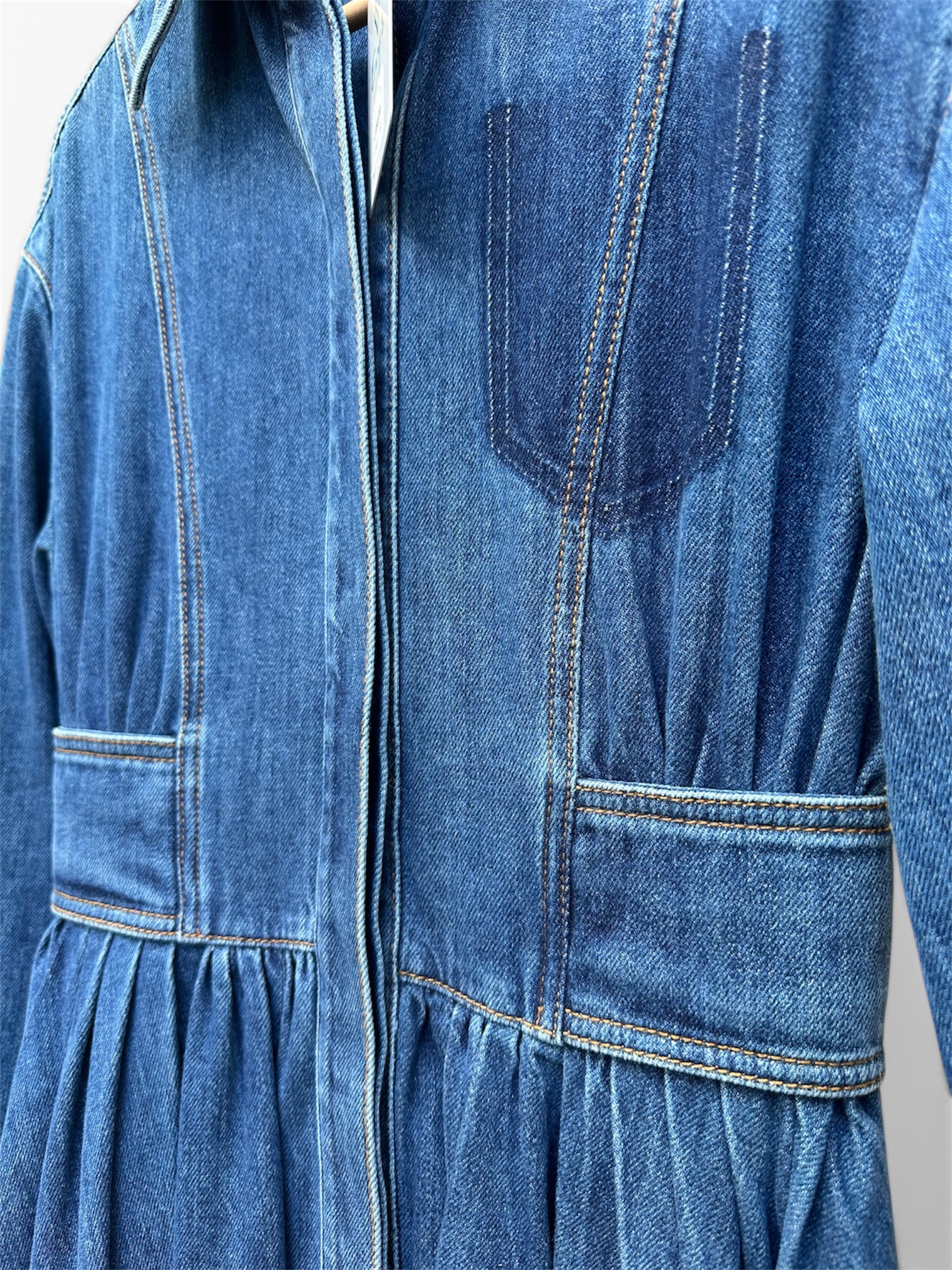 Deze uitzonderlijk prachtige jeansjurk is ontworpen door designer Alexander mcQueen.